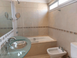 Baño completo con luz y ventilación natural